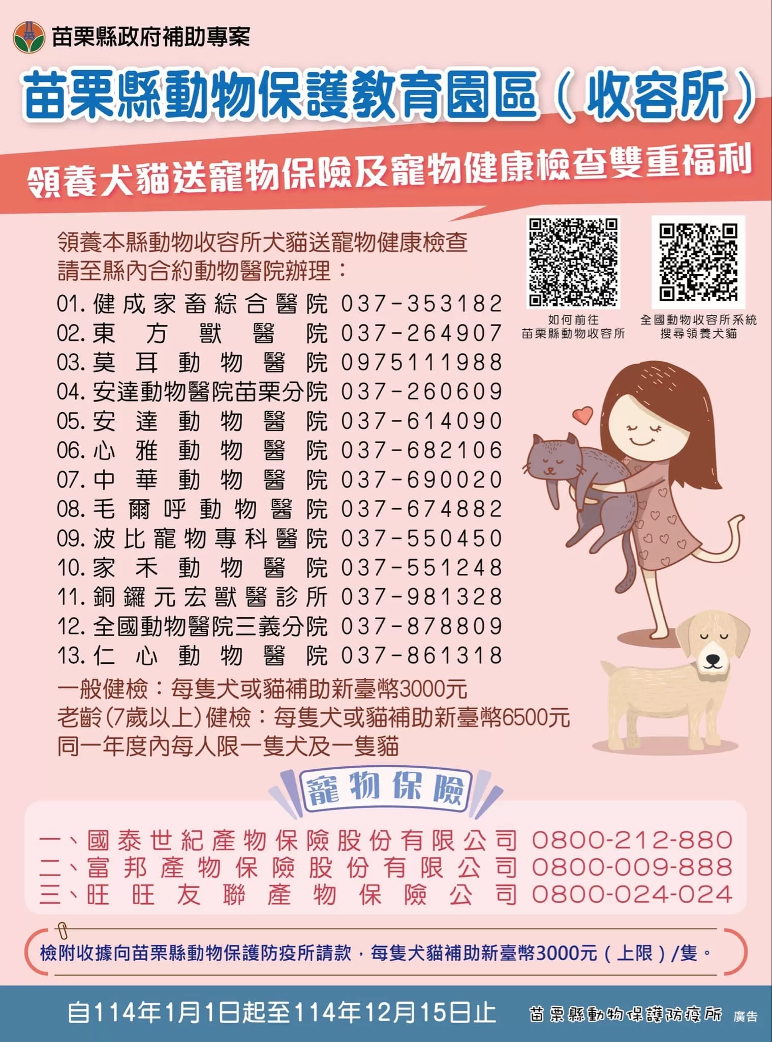 📍 苗栗縣合作動物醫院清單 👉 請參考下方附件,撥打電話預約健檢